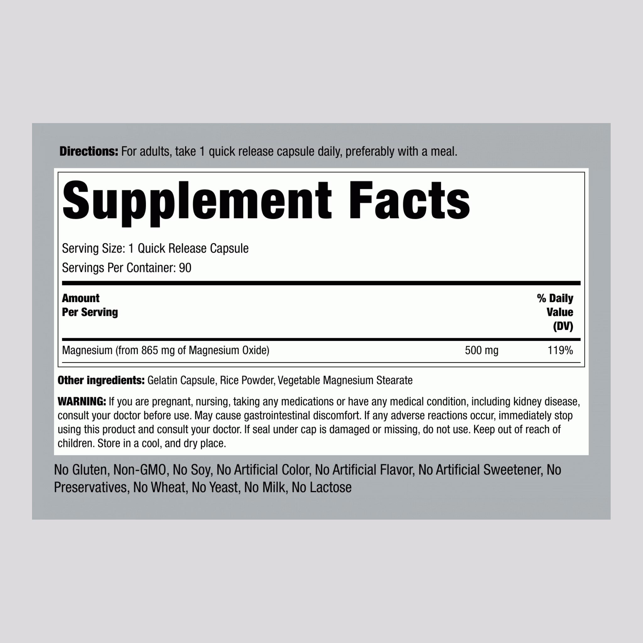 تُوفر مُكمّلات أكسيد المغنيسيوم من بايبينغ روك ٥٠٠ ملغ من هذا المعدن الأساسي في كل كبسولة سريعة المفعول. يتناول البالغون كبسولة واحدة (١) يوميًا مع الوجبات لدعم مثالي.**