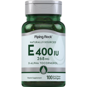 We are proud to bring you this important nutrient in our quick release, easy-to-swallow softgels. Piping Rock Natural E-400 IU strikes the perfect balance between quality and value, making it easy and affordable to support vibrant overall health!**