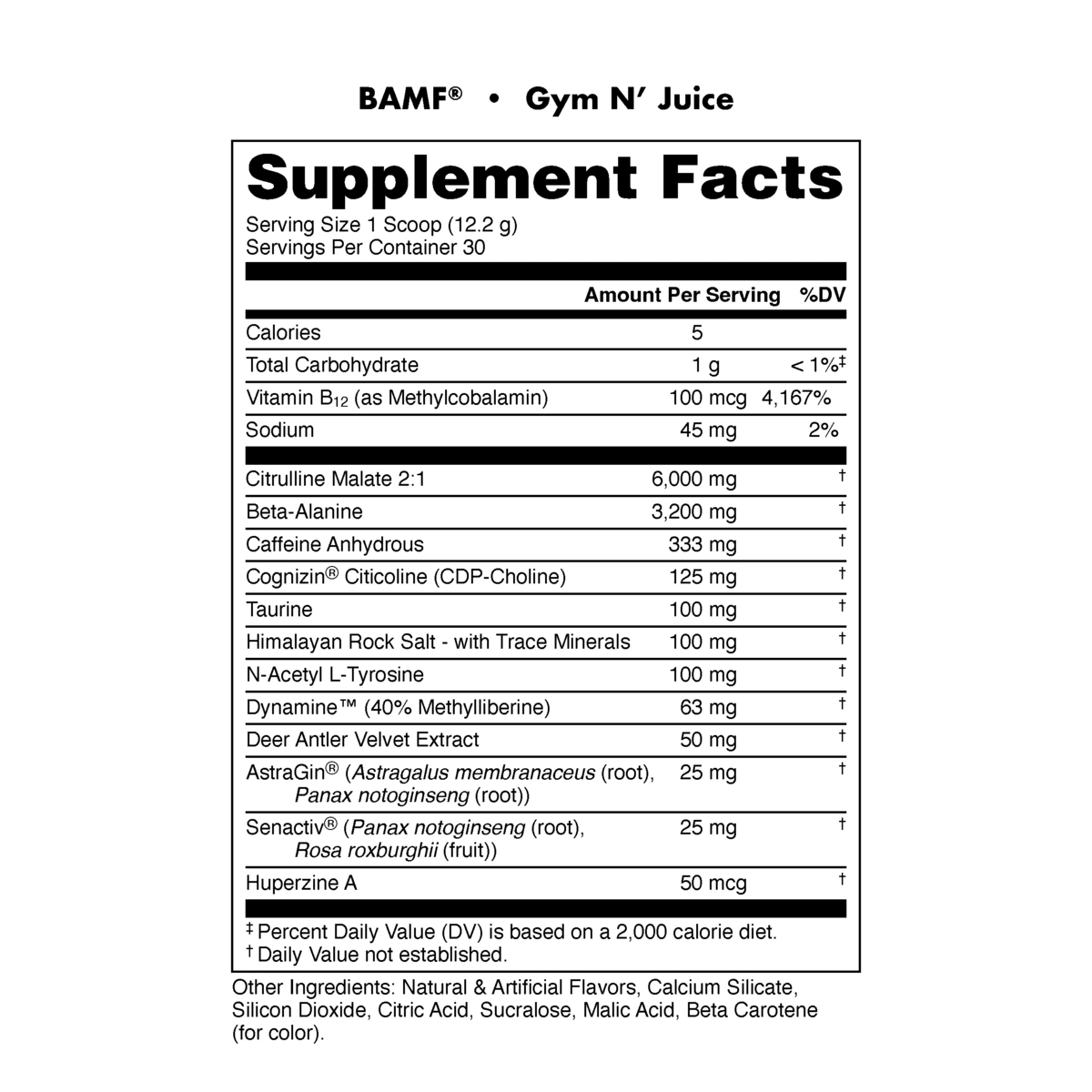 That’s where BAMF comes in. Using three nootropics shown to have positive impacts on cognitive function and motivation*, BAMF is both your brain’s geek squad and task manager. Dynamine for next-level focus, AlphaSize to help elevate mental sharpness, and Huperzine-A to accelerate memory recall.* Teaming up with all the other adept ingredients, BAMF helps upgrade your brain’s CPU, closes every window, and stops every process except for the one that matters: YOUR WORKOUT.*