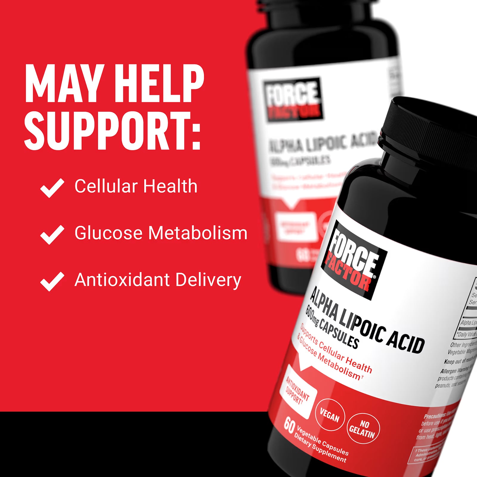 Force Factor® Alpha Lipoic Acid is a premium antioxidant supplement designed to provide comprehensive daily support. Each serving helps protect your cells from oxidative stress caused by everyday factors such as stress, exercise, and environmental pollution.