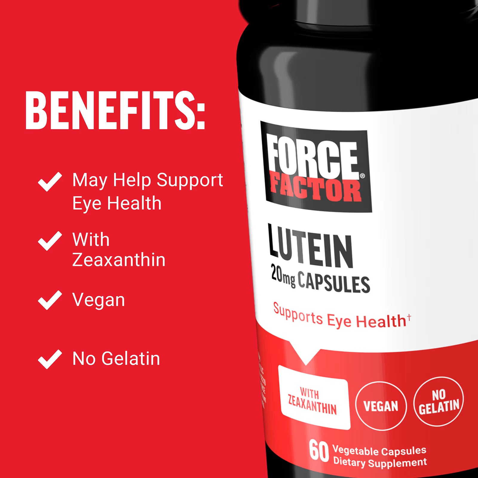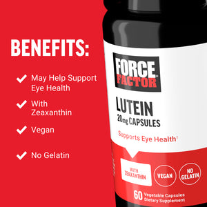 PROTECT YOUR EYES & VISIONForce Factor® Lutein provides a powerful dose of high-quality lutein in every serving, paired with zeaxanthin. Taken together, this clinically proven powerhouse of ingredients nourishes your eye health, reduces eye fatigue, and boosts visual performance. If protecting your eyes and vision is important to you, Force Factor Lutein is the one formula you should keep in view.