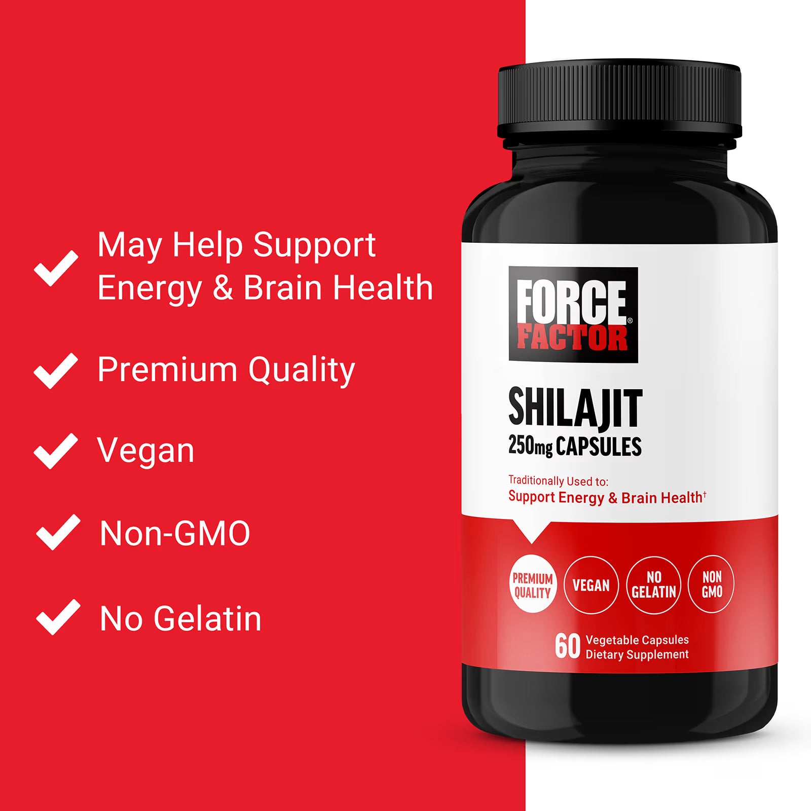 TAKE YOUR VITALITY TO THE NEXT LEVELElevate your daily vitality with Force Factor® Shilajit. This naturally powerful resin is rooted in traditional ayurvedic medicine as a naturally powerful way to boost energy, mental clarity, and vitality. Whether you're an athlete who wants to improve performance or someone looking to elevate their daily wellbeing, Force Factor Shilajit can help you do it.