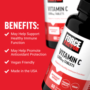 STRENGTHEN YOUR IMMUNE SYSTEMForce Factor® Vitamin C delivers a high-potency 1,000mg dose in every tablet. Added to your daily wellness regimen, it’s a powerful way to support your immune health and strength, and boost antioxidant levels to provide an added layer of cellular protection. Whether you’re feeling under the weather, or want to take action before it happens, making vitamin C a part of your daily wellness routine is a great way to do it.