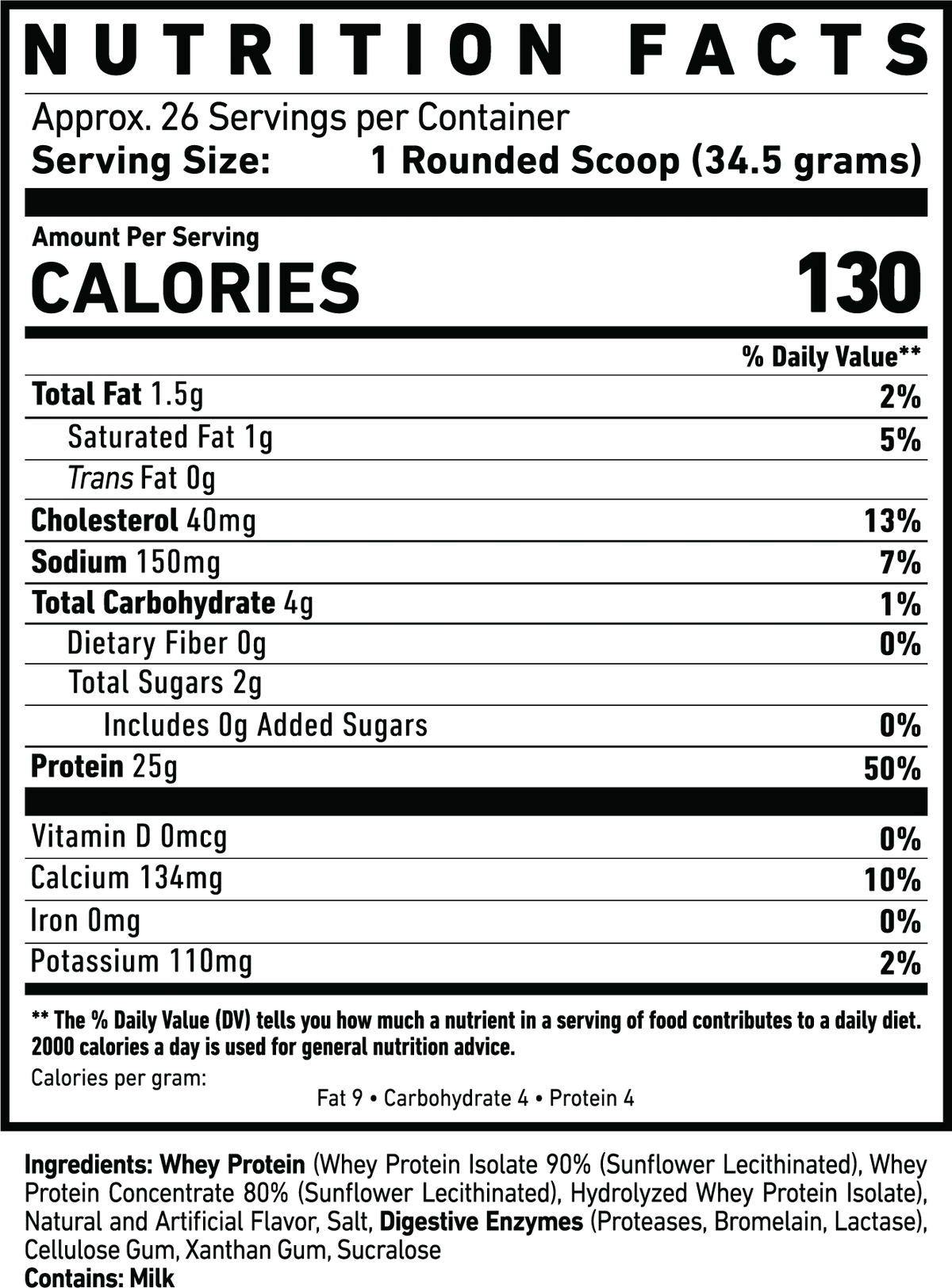 25g of Premium Protein Per Scoop – Fuel your muscles with the purest whey sources available.