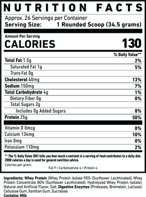 100% Transparent Label – No proprietary blends. Every tub clearly shows exactly how much of each protein source (isolate, concentrate, hydrolysate) you’re getting per scoop.