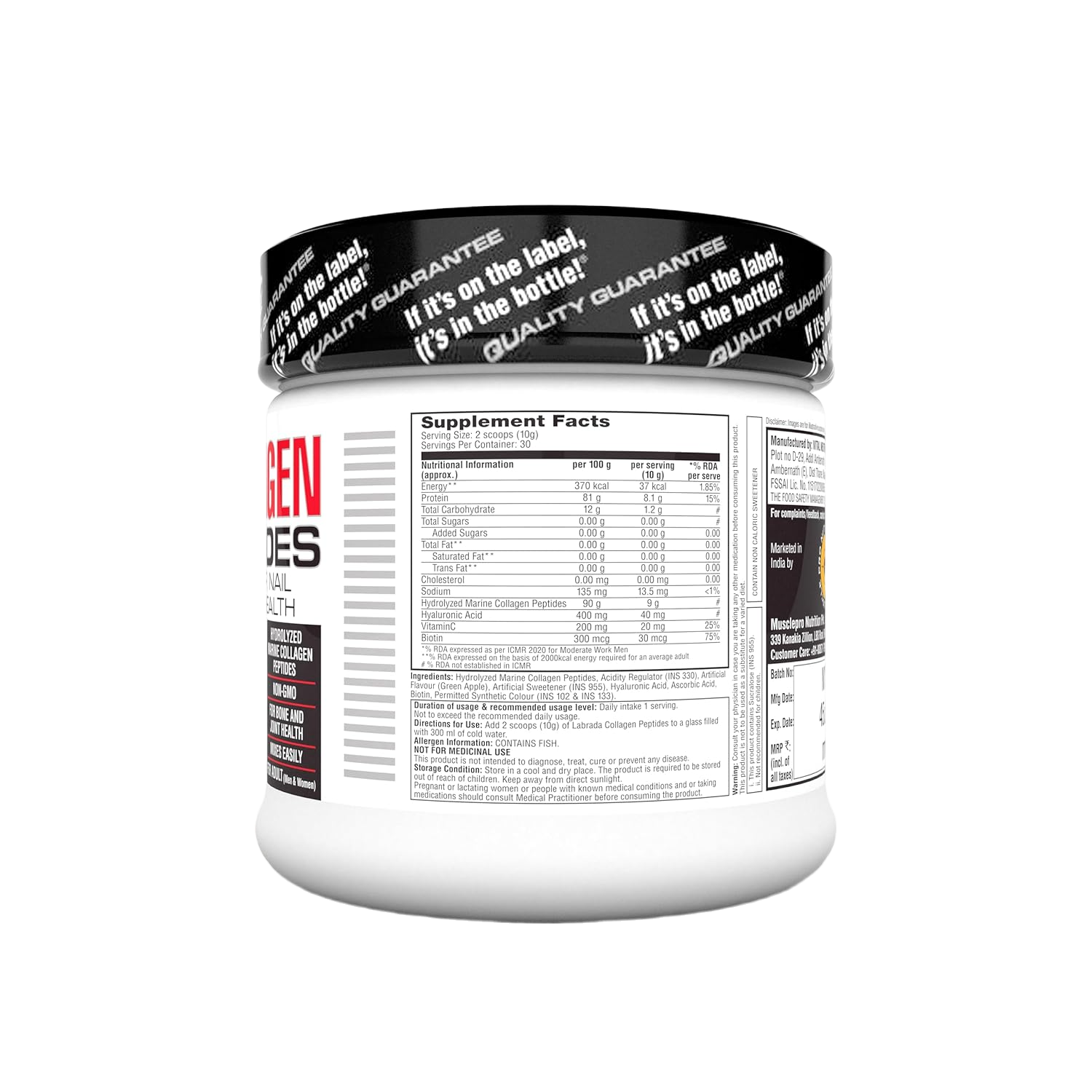 - Labrada's Collagen Peptides are sourced from Marine Life to ensure the highest quality protein. It gets hydrolyzed for easy digestion. Unflavored, water soluble & easy mixes easily in coffee, protein shakes, soups & other recipes