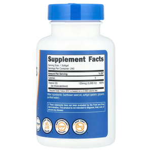 Nutricost, Vitamin D3, 125 mcg (5,000 IU), 240 Softgels