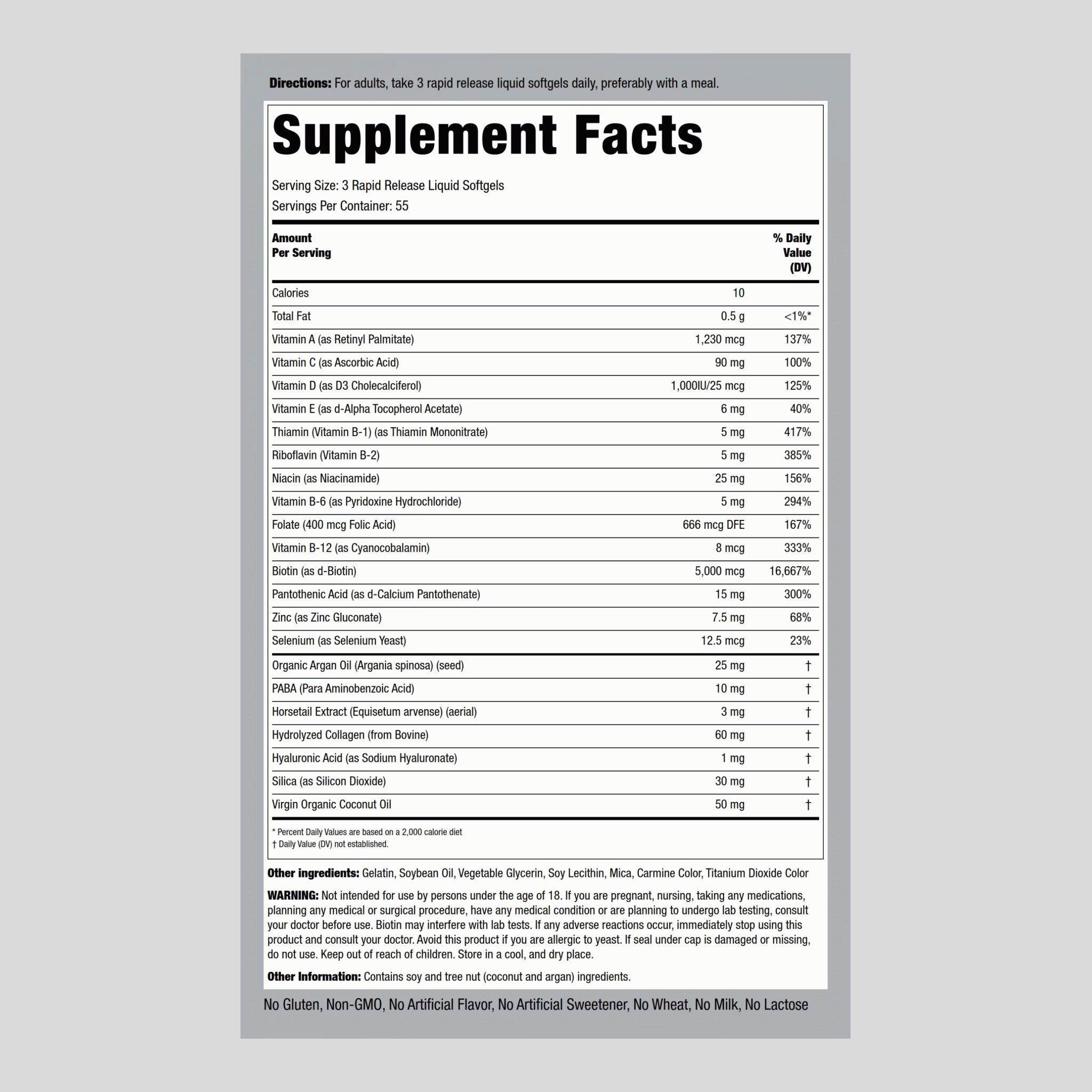 Featuring a blend of key vitamins, minerals, herbs and other beautifying nutrients, each caplet has been formulated to deliver potent, wholesome support for your smooth, supple skin, luscious locks and strong, clear nails.** This superior strength beauty supplement also contains 5000mcg of Biotin per serving and is enhanced with Moroccan Argan Oil, called "Liquid Gold" in the beauty industry! Discover the bliss of radiant confidence and a natural, healthy glow… because you deserve it!**