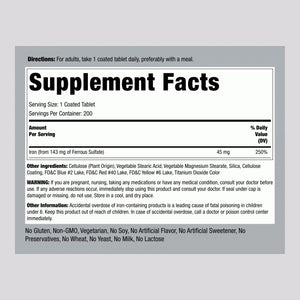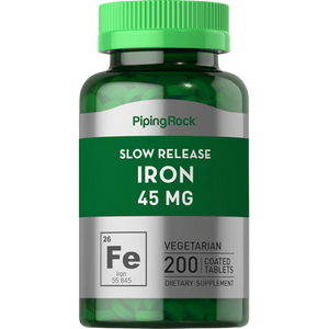 Feeling run down? You may need a little more iron in your diet. Piping Rock Iron Sulphate 45 mg delivers this key essential nutrient in its ferrous sulfate form, direct to you. Iron is present in every single cell in your body, where it carries oxygen and plays a critical role in the production of energy. Iron also provides nutritional benefits for many important health processes. Piping Rock Ferrous Sulphate 45 mg makes it easy to restore this important trace mineral to optimal levels for peak wellness support!