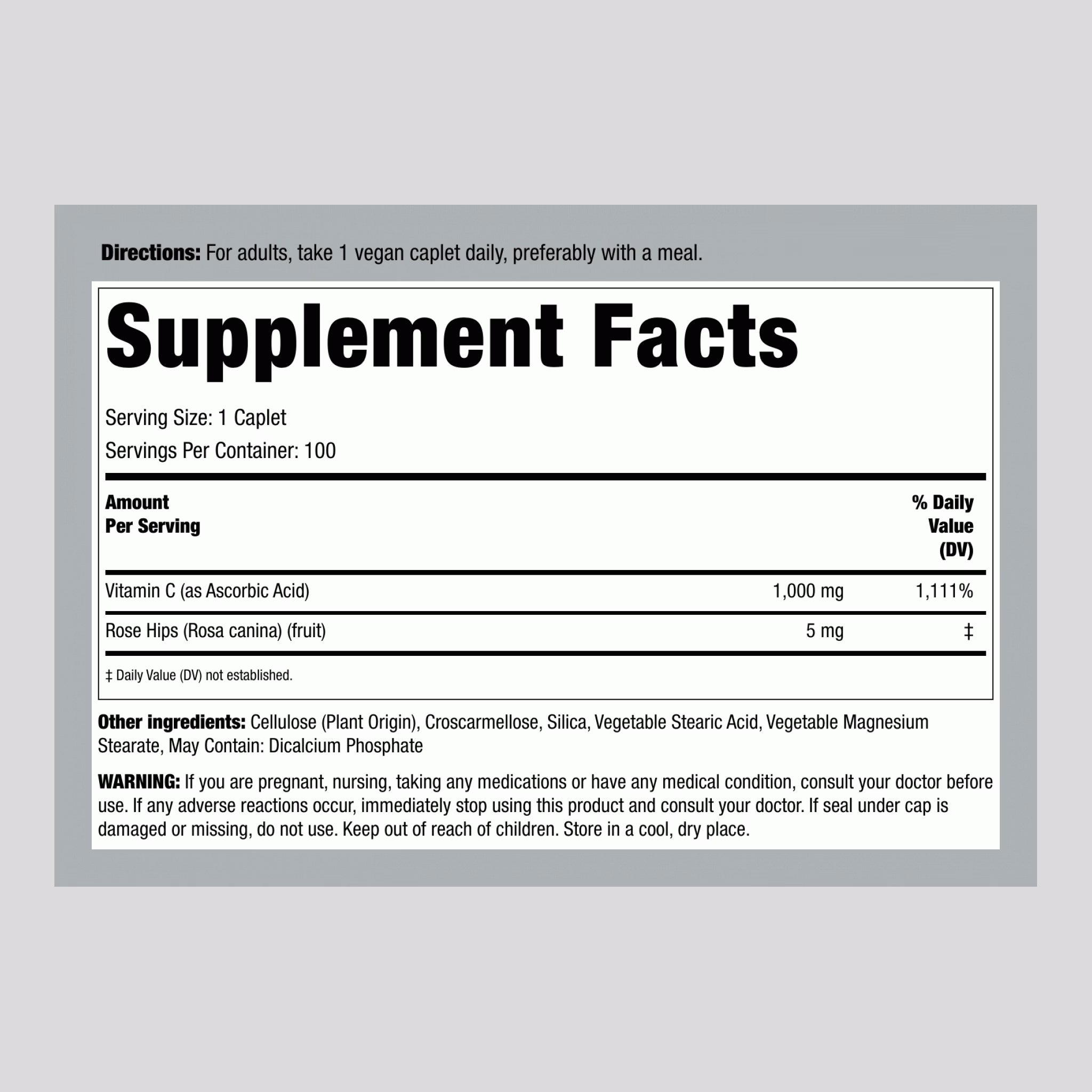 Piping Rock Vitamin C 1000 mg with Rosehips, 100 Caplets