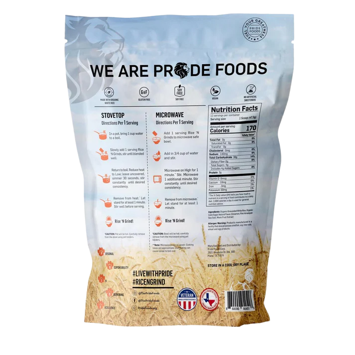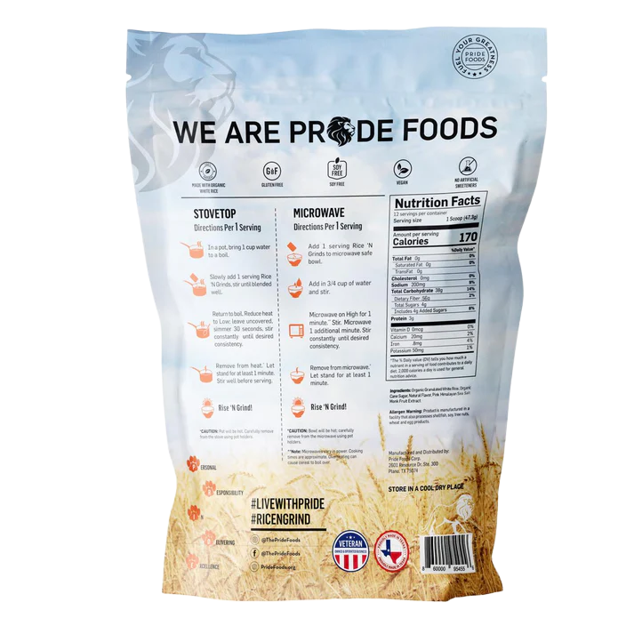 Slowly add 1 serving Rice ‘N Grinds and stir until blended.