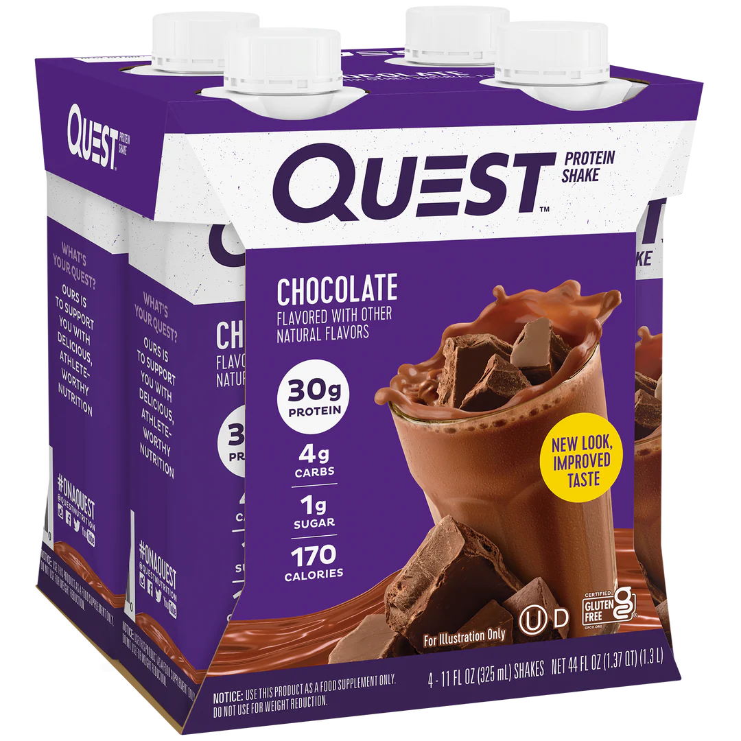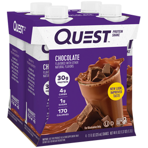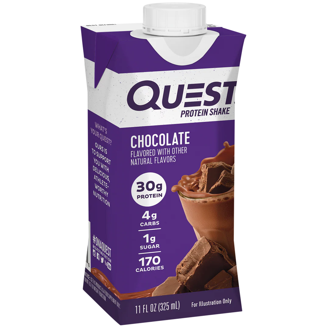 Quest Nutrition Protein Shake is a Creamy, Deliciously-satisfying High Protein Shakes That Are Low Sugar and Low Carb. Indulge in Rich Chocolate Flavor That's Perfect for Life on the Go. Ready to Drink With 30g of Protein, 4g of Carbs, and 1g of Sugar Per Serving. Toss One in Your Backpack, One in Your Laptop Bag - and a Few More in the Car.