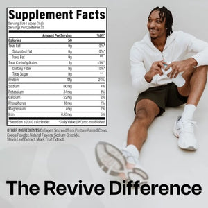 Revive Collagen is a premium supplement derived from 100% Grass-Fed Collagen sourced from pasture-raised cows. Each serving provides 12 grams of hydrolyzed collagen, ensuring better absorption and effectiveness. This formula is rich in Type I and Type III collagen, which are vital for maintaining healthy skin, hair, nails, bones, and tendons.