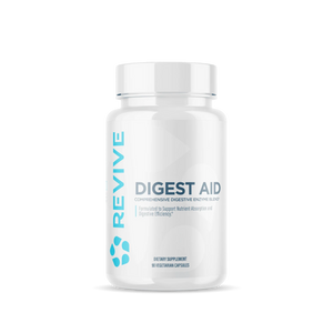 Revive Supplements Digest Aid is a natural supplement designed to improve digestion and promote gut health. This specialized formula combines digestive enzymes, probiotics, and prebiotics to optimize digestion, enhance nutrient absorption, and support a balanced gut microbiome.
