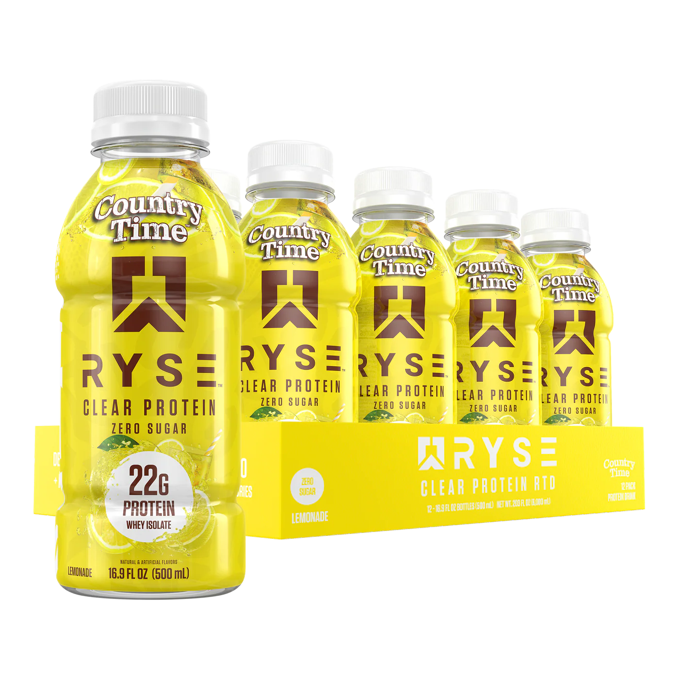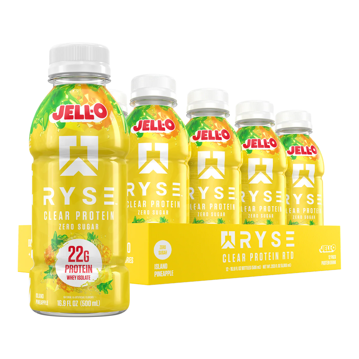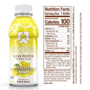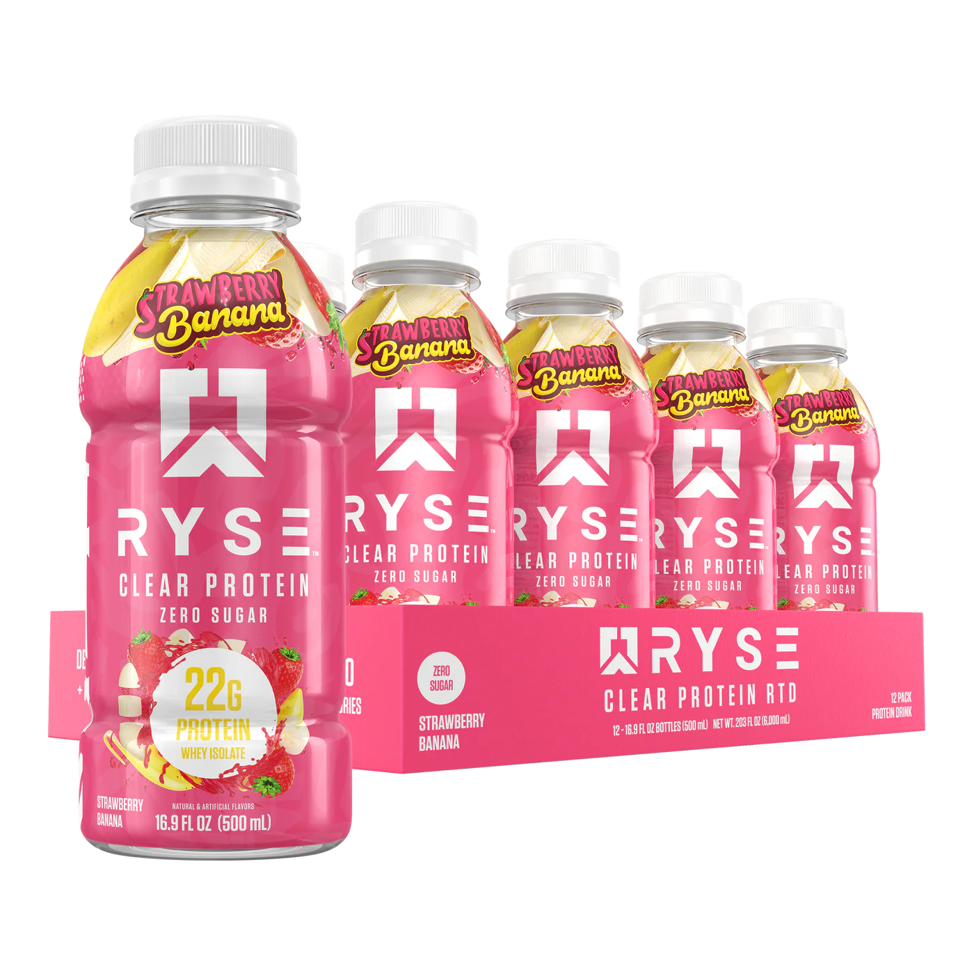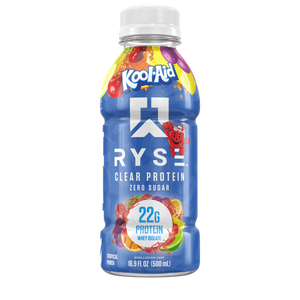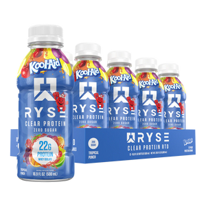 RYSE Clear Whey Protein RTDs pack 22g of fast-digesting whey isolate into a crisp, juice-like drink-just 100 calories, zero sugar, and available in refreshing, authentically licensed flavors.